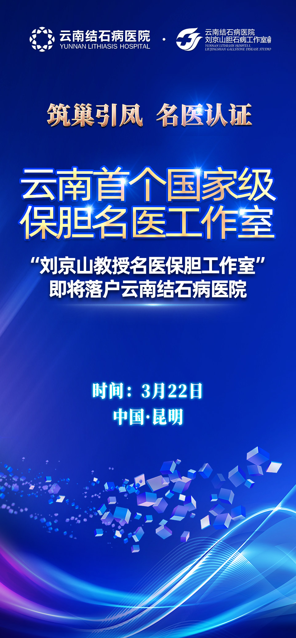 3月22日,云南首个国家级保胆名医工作室——“刘京山教授名医保胆工作室”将在云南结石病医院正式落户。