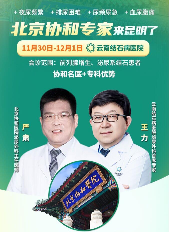 11月30日、12月1日,北京协和医院严肃教授将在云南结石病医院为前列腺增生患者亲施瑞梦手术,助您重获舒畅人生!