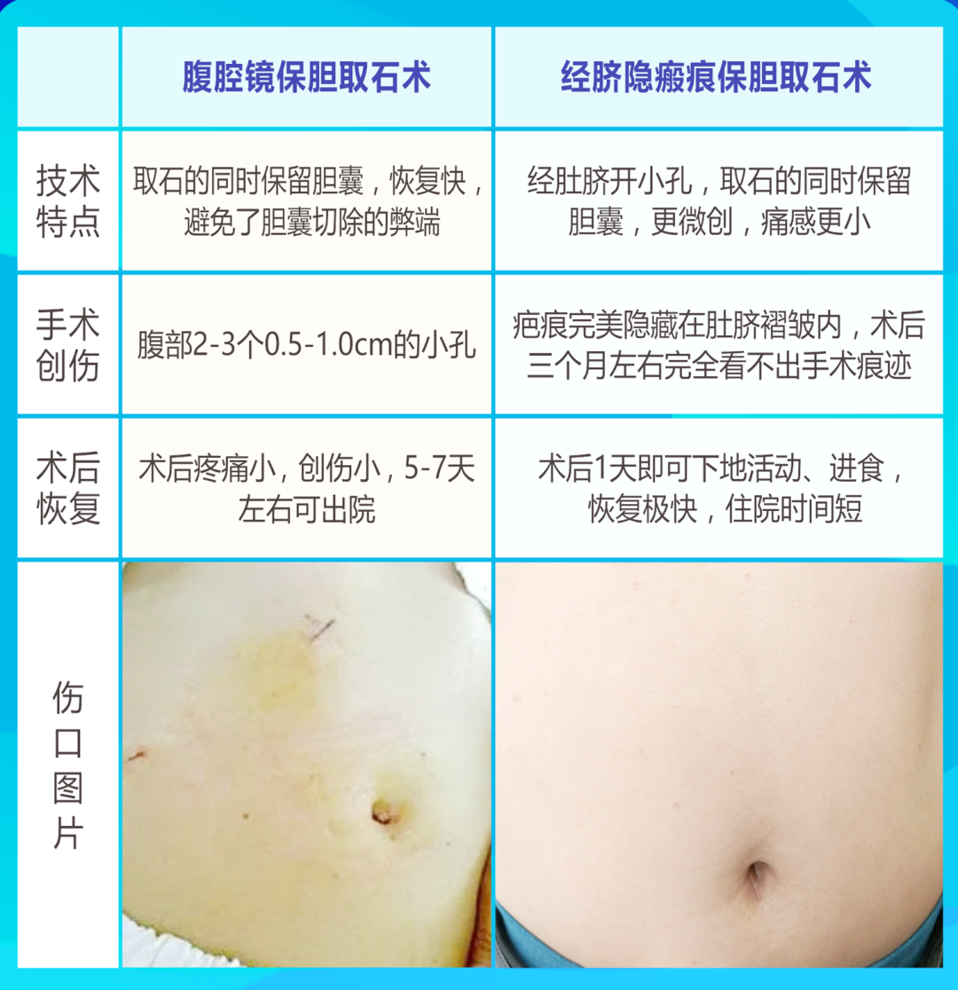 创伤小:通过脐环作微小切口,此处肌肉、神经、血管很少,术后95%以上患者无疼痛感或痛感轻微。
